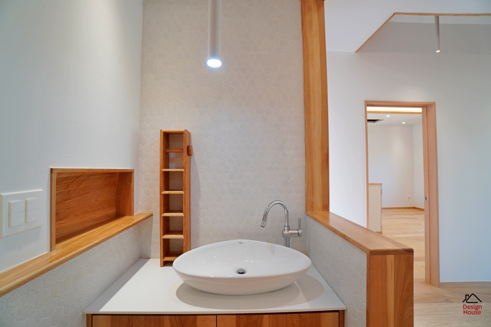 2층 거실 세면대 공간과 안쪽 욕실 공간입니다
